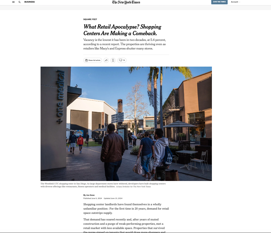 That demand has soared recently and, after years of muted construction and a purge of weak-performing properties, met a retail market with less available space. Properties that survived the purge signed up tenants that would draw more shoppers and give them more reason to linger. That meant more restaurants and venues that promote recreational experiences, like ax throwing and, more recently, pickleball. It also meant less space for traditional retailers that weren’t performing as well, like bookstores and apparel brands.